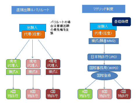 直接出願とマドプロ出願(マドリッド制度)の手続比較