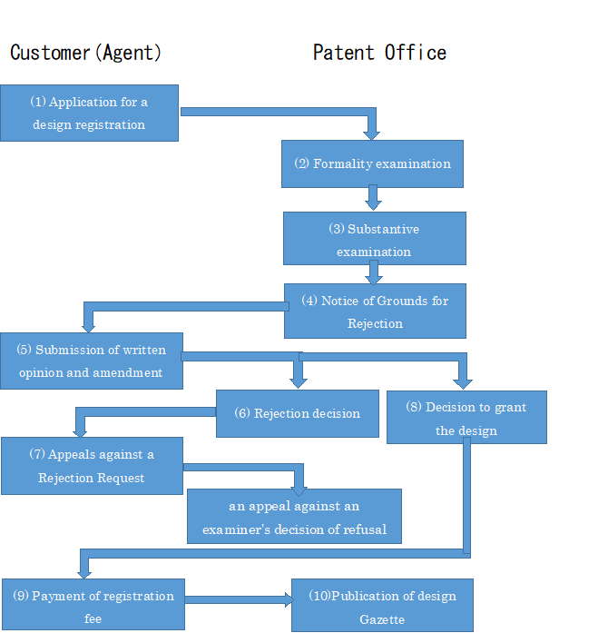 The flow of processing when applying for design registration to Japan directly from overseas is the same as the flow of processing for national design registration application.
