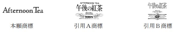 これらは、『外観上の類似の度合いは多少低 いとはいえ、「アフタヌーンティー」との称呼とともに、「午後の紅茶」との観念を共通にする ものと認められるから、本願商標は、商品の出所につき引用両商標との関係で誤認混同される おそれがありる。』として類似すると判断され、出願商標(本件商標)は登録できないこととされました。