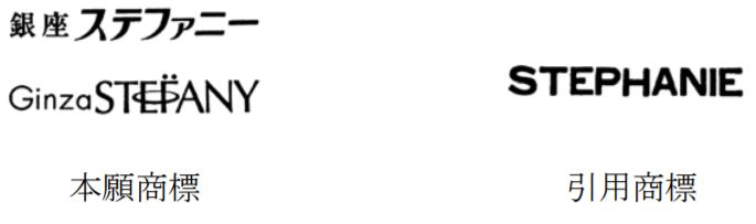 これらは『本願商標中「銀座」「Ginza」の文字部分は、東京都中央区に存在 する各種高級商品を販売することで著名な繁華街の名称であり本願商標の指定商品の取引者、 需要者によっても、そのように認識され、本願商標に接する取引者、需要者は、本願商標の構 成のうち、自他商品の識別機能を果たす部分は、「ステファニー」、「STEFANY」の部分 にあるものと理解し、これより生ずる称呼をもって取引に当たる からは「ステファニー」との称呼も生ずるものと認められる。』として類似すると判断され、出願商標(本件商標)は登録できないこととされました。